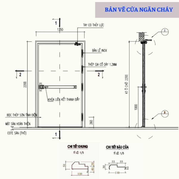 Cánh cửa: Cánh cửa tiêu chuẩn làm bằng thép nguyên tấm. Bên trong được bố trí các hệ xương thép và vật liệu ngăn cháy, đảm bảo khả năng chống cháy theo tiêu chuẩn, độ ổn định cao, cứng vững.