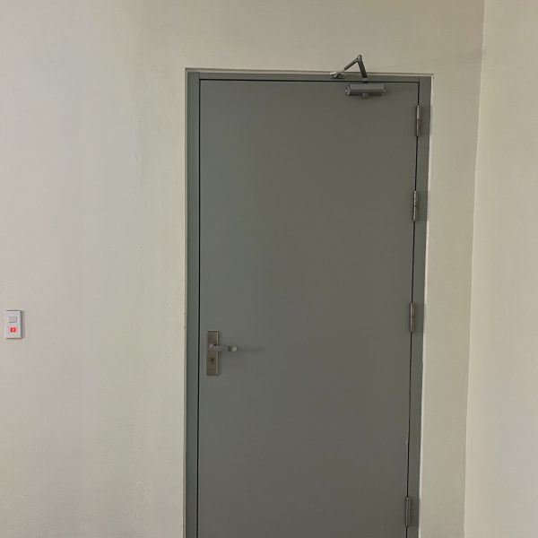 Khóa cửa tiêu chuẩn: Khóa cửa tiêu chuẩn, chất liệu bằng thép không gỉ, đảm bảo khả năng chống cháy theo tiêu chuẩn, an toàn và bền vững.