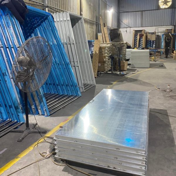 Giữa hai mặt thép được bố trí các xương tăng cứng bằng thép và lớp vật liệu ngăn cháy chịu nhiệt độ cao.